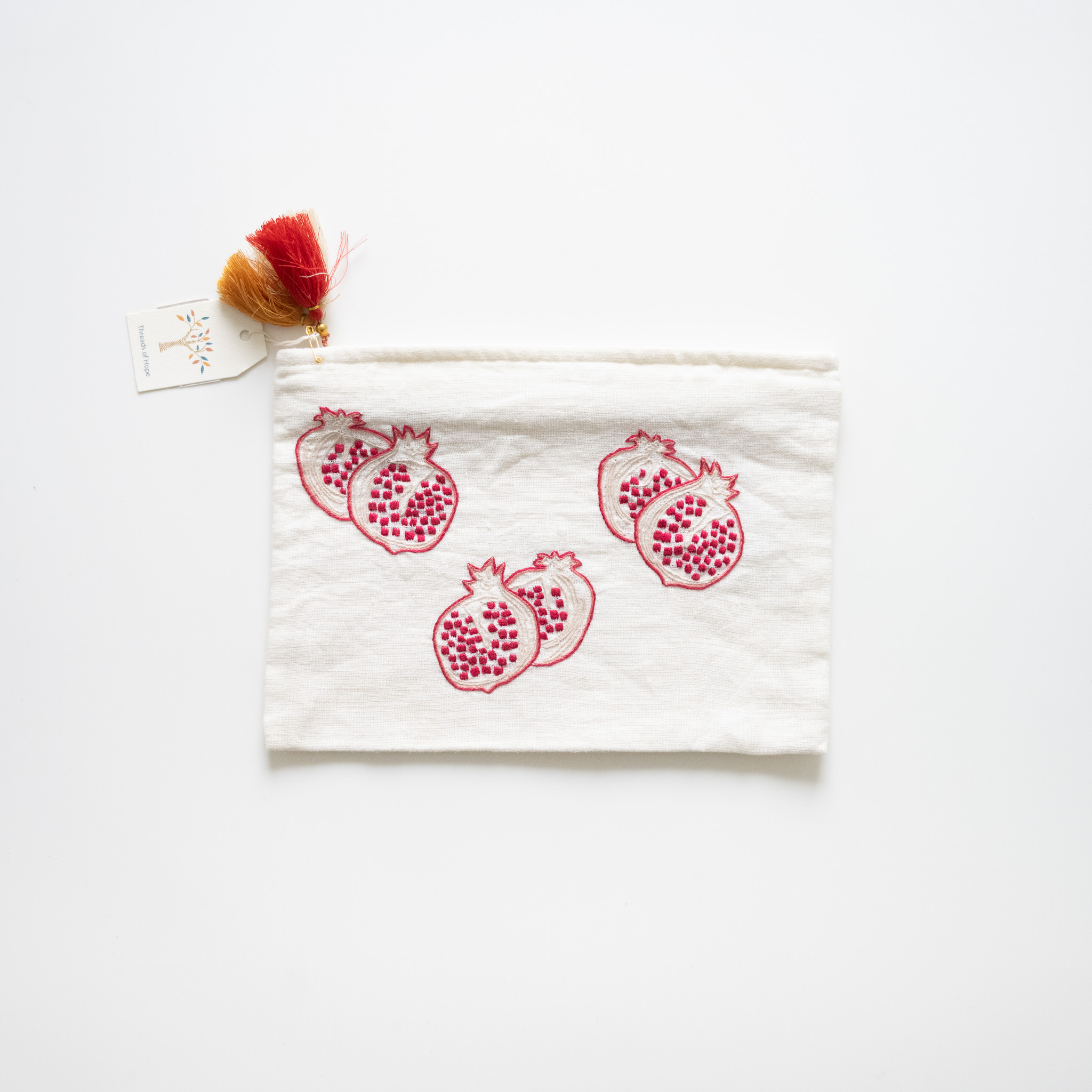 These hand embroidered pouches are sold in support of Threads of Hope Cairo, which is an enterprise that is dedicated to training and employing underprivileged women in Egypt.